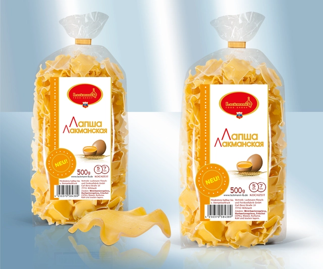 Συστατικά: δημητριακά μαλακού σίτου, δημητριακά σκληρού σίτου, μελανζέ αυγών κοτόπουλου 20%, νερό, κουρκουμάς.